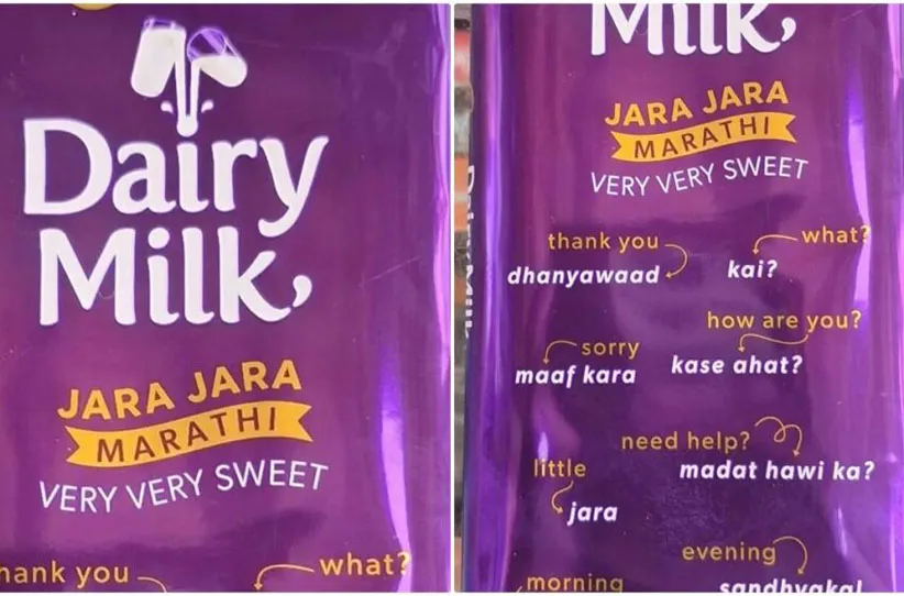 मुंबई - कॅडबरी डेअरी मिल्कने मराठी शब्द रुजवण्यासाठी खास उपक्रम सुरू केल्याचे पाहायला मिळत आहे. या प्रसिद्ध चॉकलेट कंपनीने आपल्या पॅकेजिंगमध्ये एक खास बदल केला आहे, ज्यामुळे आता मराठी भाषा थेट चॉकलेटच्या रॅपरवर दिसत आहे. ‘जरा जरा मराठी…’ या घोषणेसह कॅडबरीने इंग्रजी आणि मराठीतील काही सोपी वाक्ये छापली आहेत. यामुळे सोशल मीडियावरया उपक्रमाचे जोरदार कौतुक होत आहे, आणि अनेकांनी याला महाराष्ट्रातील मराठीच्या भूमिकेशी जोडले आहे.